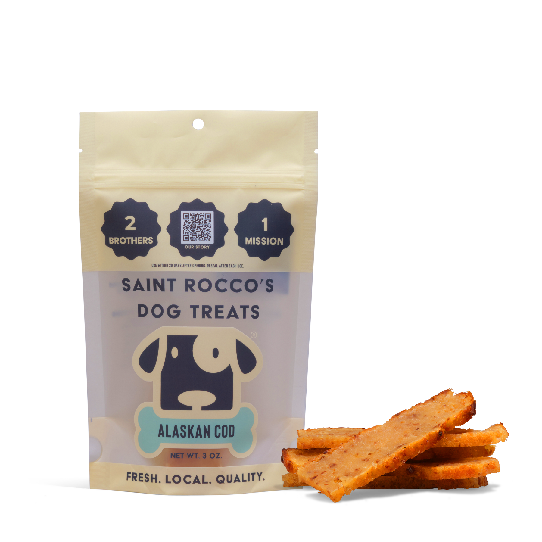 Our Alaskan Cod treats are hand-crafted in small batches daily in our gourmet dog kitchen in Bucks County, PA.