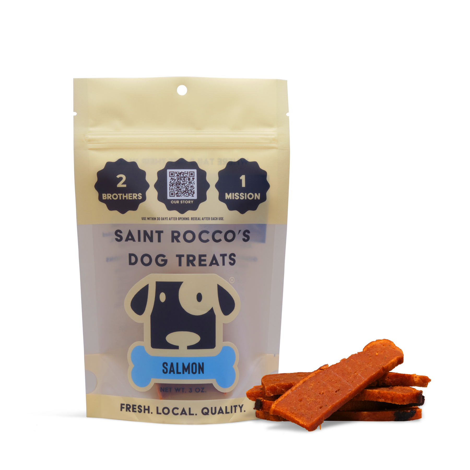Our Salmon treats are hand-crafted in small batches daily in our Bucks County, PA, gourmet dog kitchen.